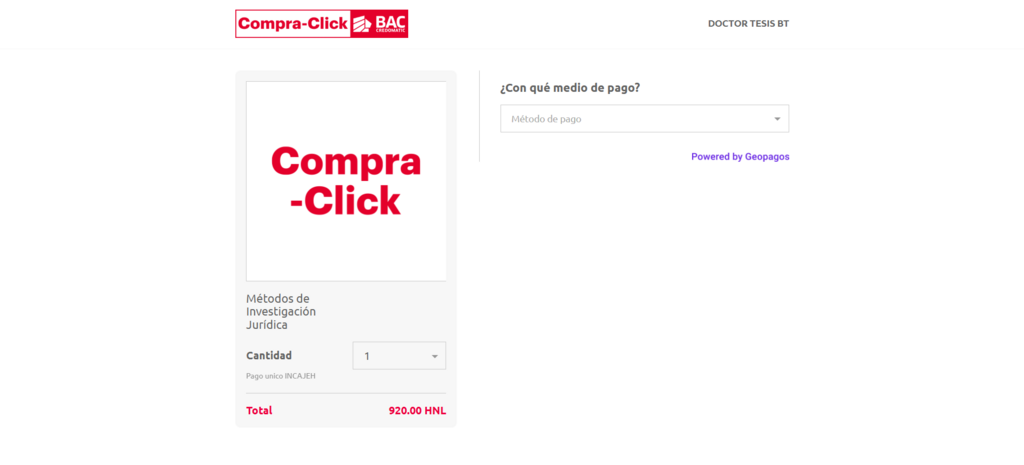3. Haz click en Métodos de Pago > COMPRA CLICK
