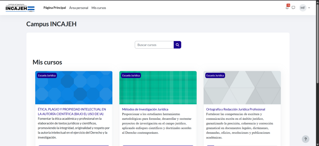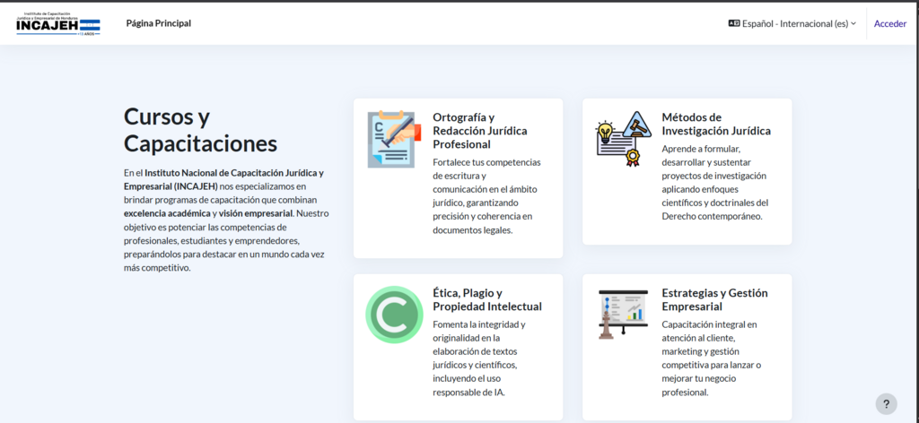 5. Espere a que sus credenciales de acceso sean enviados a su correo y podrá acceder a: https://campus.incajeh-hn.com/
